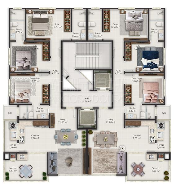 3 dormitórios (3 suítes)